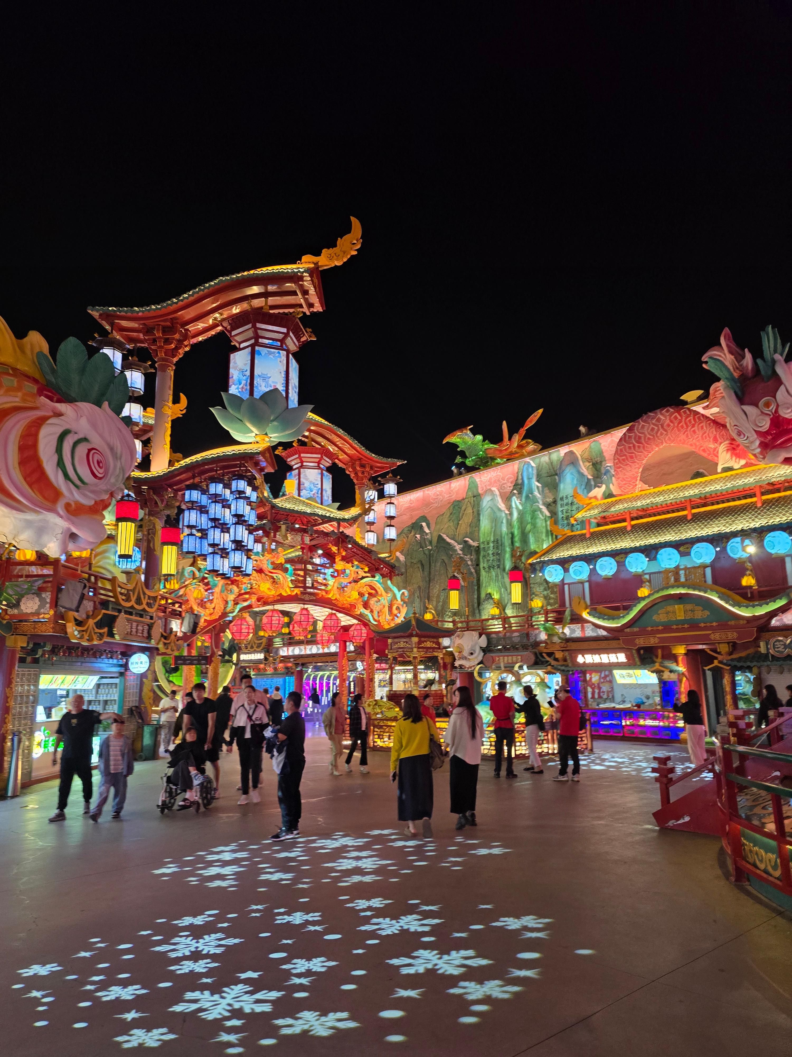 드디어 기대하던 불야성! 이름 그대로 밤이 낮처럼 환한 곳이에요. 입구부터 번쩍번쩍✨