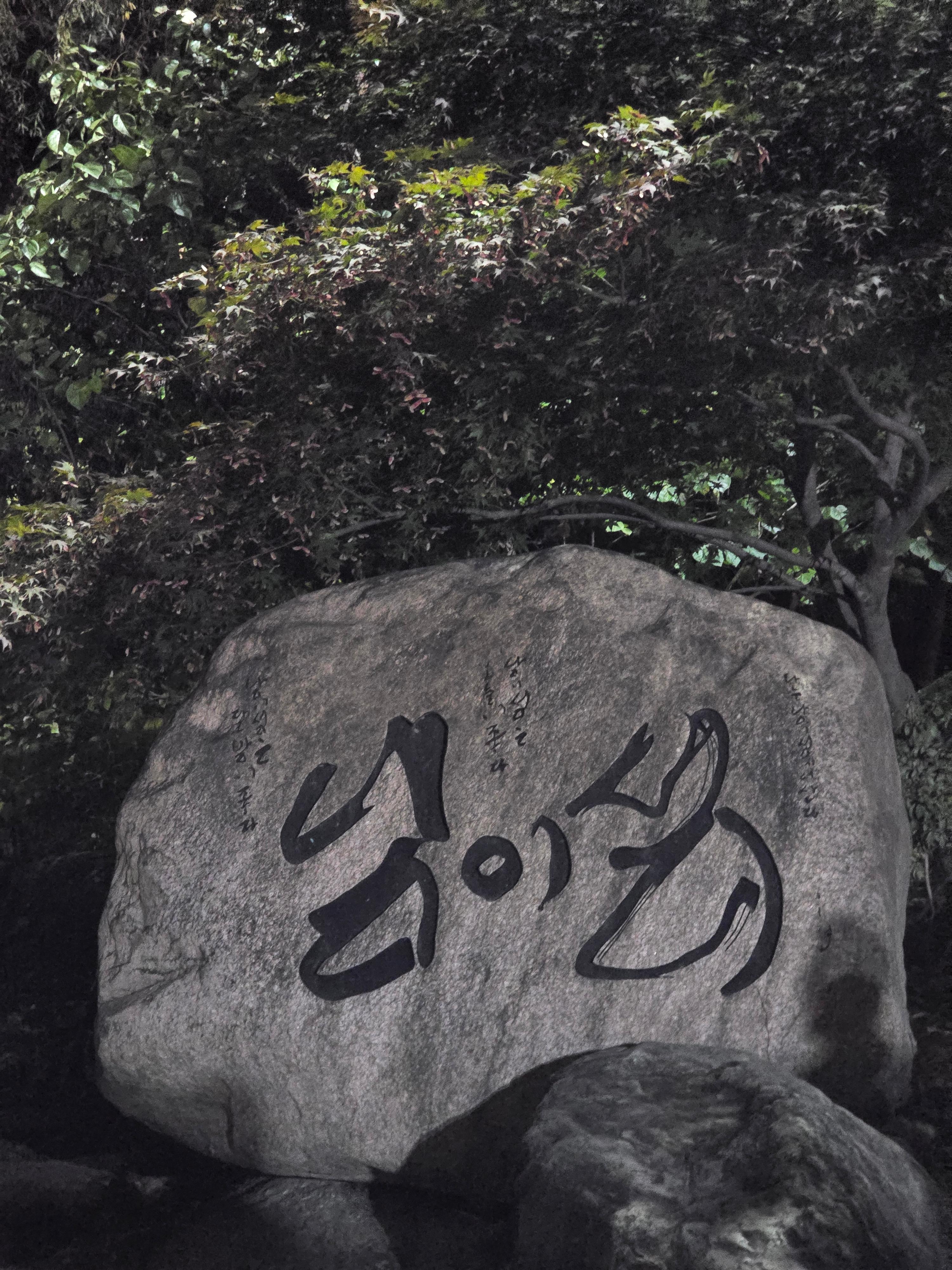 기와로 만든 문, 여러 나라 언어로 쓰인 인삿말 구조물이 있어요